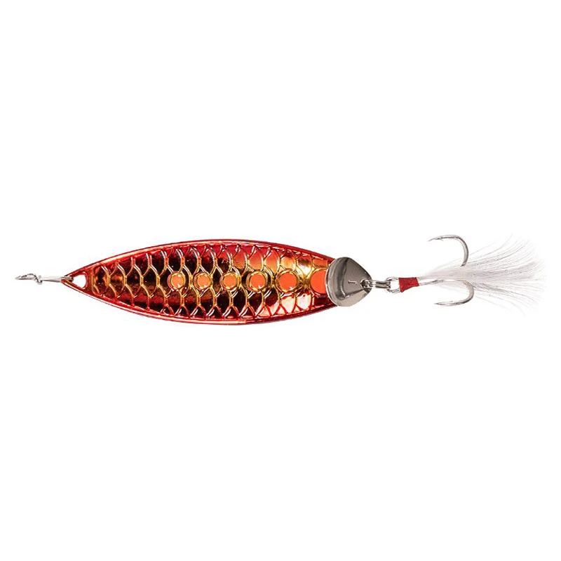 Metalliseos ja kalamainen muoto takaavat erityisen pitkät heitot. Tehokas syötti, jota on saatavana useissa eri kokoluokissa ahvenelle, hauelle, lohelle, taimenelle, kirjolohelle ja monille muille!