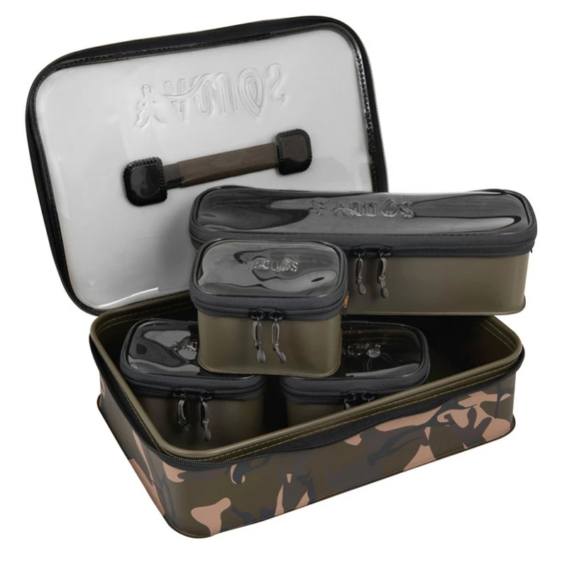 Fox Aquos Accessory Bag System on täydellinen ystävä vesillä, saat täyden hallinnan ja mukavan ja siistin järjestyksen lisävarusteillesi ja päätelaitteillesi. Kuivaa, siistiä ja turvallista Fox Aquosin avulla.• Kovaa kulutusta kestävä, vedenpitävä EVA-pussijärjestelmä• Toimitetaan neljän khakinvärisen tarvikepussin kanssa• Ihanteellinen useiden välttämättömien tarvikkeiden, kuten päätykalastusvälineiden, PVA:n, lyijyjen, keppisekoitusten jne. kuljettamiseen• 1 pitkä sisäpussin: 33cm x 10cm x 6cm• 3 lyhyttä sisäpussia: 13cm x 9cm x 6cm• Ainutlaatuinen Fox Camo -kuvioinen muotoilu• 1mm seinät 1.5mm raskas pohja lujuuden vuoksi• Laadukkaat suuret vetoketjut• Gunsmoke läpinäkyvä merkkikansi• Kovaa kulutusta kestävät polyesteristä valmistetut kantohihnat• Ergonomiset vetoketjunvetimet• Järjestelmän mitat 37cm x 26cm x 7cm.