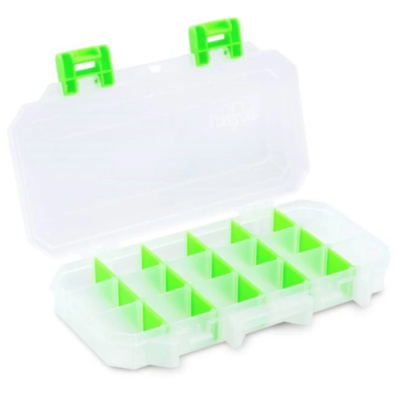 Keskikokoisessa kalastustarvikelaatikossamme on 3 pysyvää väliseinää, jotka mahdollistavat 3-18 lokeroa. 11” x 7 1/4” x 1 3/4” (27,94 x 18,41 x 4,44 cm)Lure Lock tuo arvoa ja innovaatiota kalastustarvikkeiden säilytysluokkaan Made-In-The-USA 100-prosenttisesti puhtaasta polypropeenista ruiskuvaletuilla laatikoilla ja houkuttelevilla fluoresoivilla vihreillä salvoilla. Geelittömät kotelot ovat ihanteellisia kalastajille, jotka haluavat säilyttää pehmeät muoviset syötit koteloissa alkuperäispakkausten sijaan.