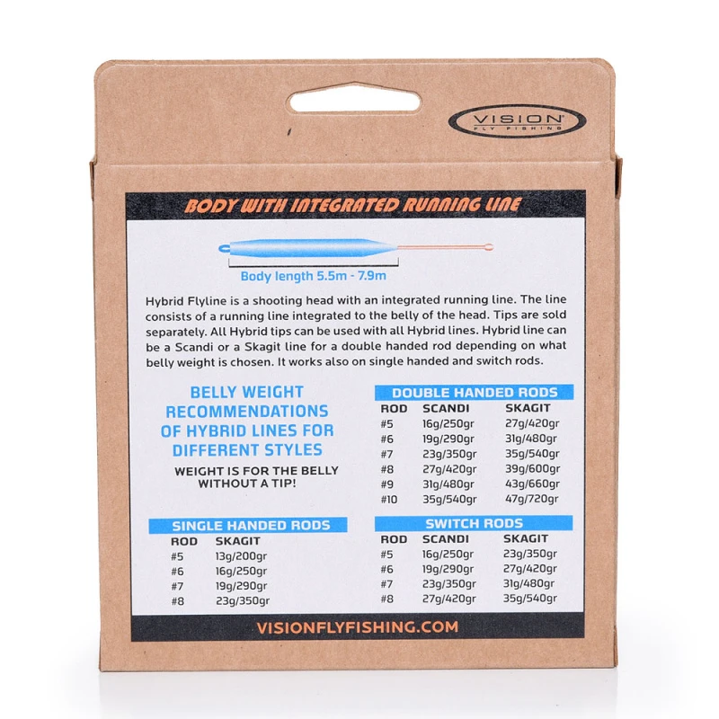 Linja koostuu päähän integroidusta juoksulinjasta. Hybridikärjet myydään erikseen. Annamme sinulle mahdollisuuden valita, mitä haluat tästä siimasta. Valitse ensin tyylisi. Scandi, Skagit, Switch tai Single Handed. Valitse sitten valitulle tyylillesi sopiva vatsapaino suositustaulukostamme. Osta lopuksi erikseen myytävä kärki haluamallasi pituudella. Kaikki Hybrid-kärjet sopivat kaikkiin Hybrid-perhosiimoihin. Voit käyttää myös ACE T-kärkiä.